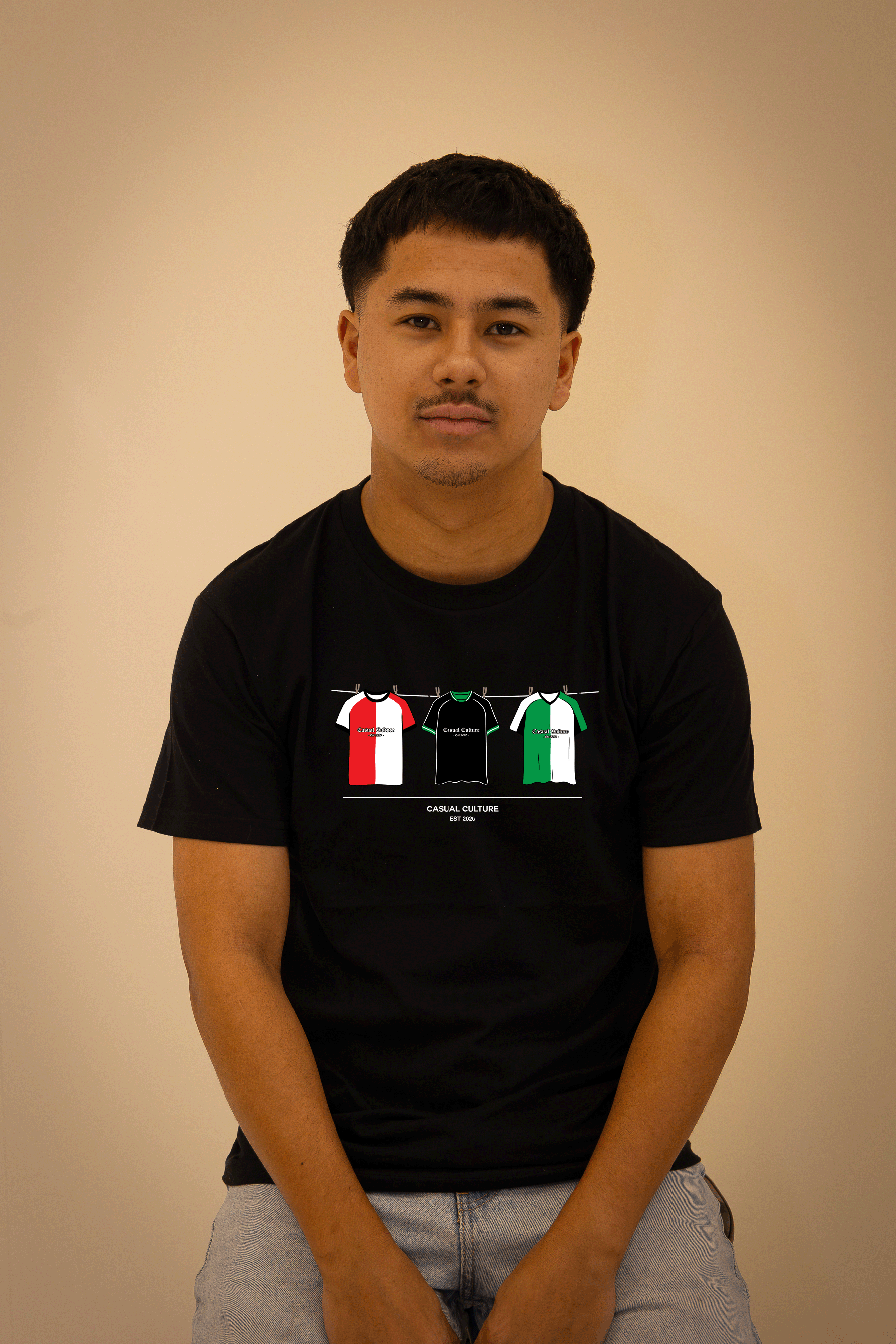 Op de voorkant zijn drie iconische Feijenoord-shirtprints gedrukt. In de nek het stadswapen van Rotterdam of jouw vak naar keuze. Verkrijgbaar voor de collectie van 24/25 & 26/26